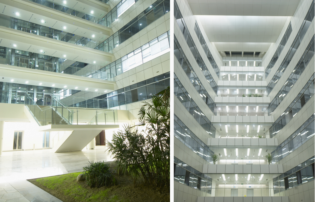 由保羅·安德魯建筑事務所聯合設計。大型智能化辦公建筑群,總建筑面積 37.93萬平方米。建筑造型新穎,匠心獨運,富有時代感。以橢球形會議中心(7號樓)為核心,6幢U型平面建筑(1~6號樓)呈放射狀布置于周邊。